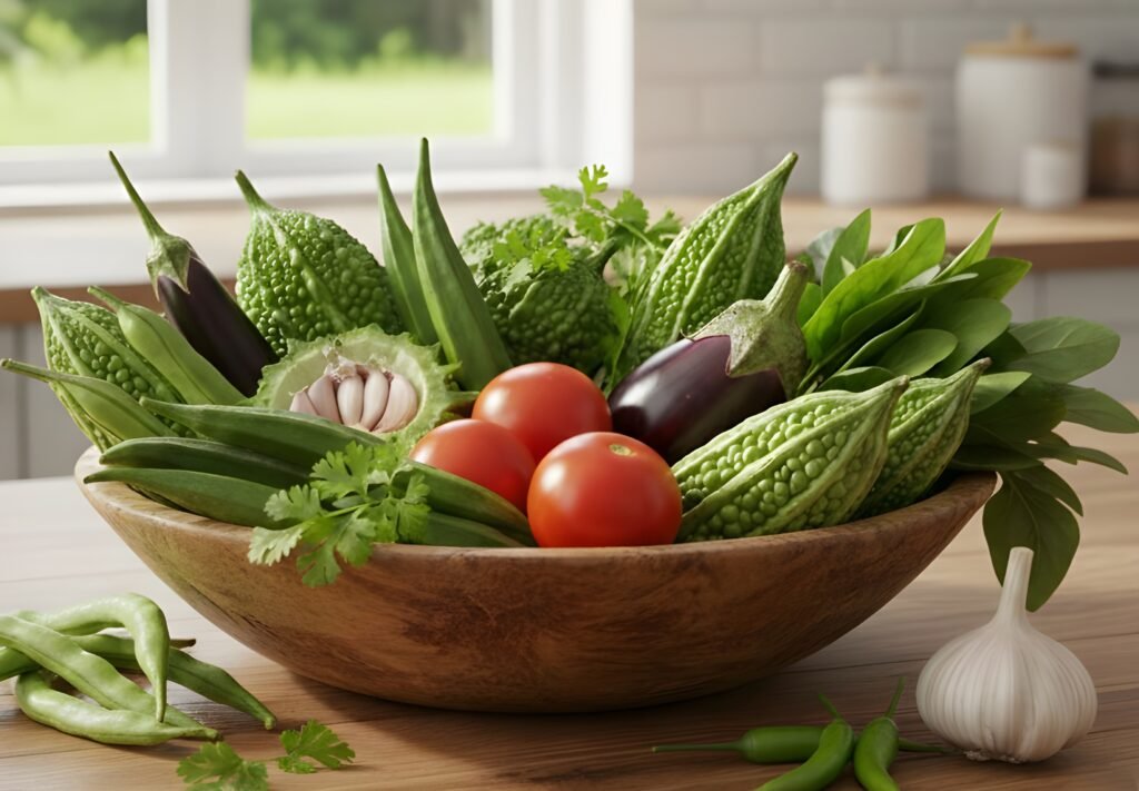 • Onions, Tomatoes, Drumsticks, Green Chilli, Bitter Gourd